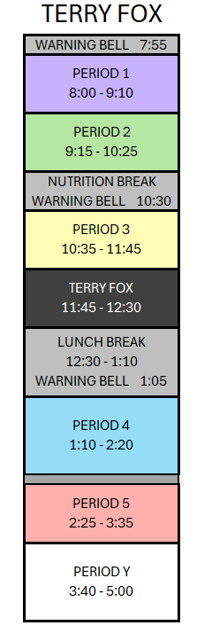 Bell Schedule: Terry Fox Run Day (Sept 25th)